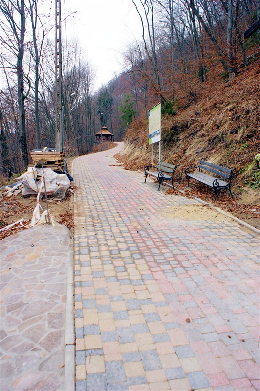 Realizacja projektu rozpoczęła się od remontu schodów terenowych wznoszących się nad skwerem przy Nowym Domu Zdrojowym w kierunku Kościoła pw. św. Kingi. Odnowione schody mają szerokość 2,5 m i dł. 40 mb. Od schodów do kościoła prowadzi brukowany chodnik szer. 3 m i dł. ok. 95 m. Następnie zaprojektowano modernizację istniejącego, mocno zaniedbanego i częściowo zagrożonego osunięciami deptaka na odcinku od kościoła św. Kingi, aż do zejścia łączącego się z traktem nad Popradem. Całość brukowanego traktu pieszo-rowerowego szerokości ok. 3 m i dł. ok. 682 m poprowadzona została zboczem góry, pomiędzy odnawianymi obecnie obiektami hotelowo-sanatoryjnymi. Deptak zakończony został drogą pieszo-jezdną (brukowaną, szer. 5 m) wraz z chodnikiem szerokości 1,5 m (dł. 150 m). Modernizacji deptaka towarzyszyła kompleksowa rewitalizacja zieleni na całym przebiegu jego długości – wykonano także zaplanowaną pielęgnację drzew i krzewów na pow. ok. 6 000 m2 oraz nowe nasadzenia na pow. ok. 3 000 m2. Całość prac uzupełniła budowa elementów małej architektury, a także modernizacja już istniejących elementów, które podkreślają tożsamość i charakter miejsca, w związku z tym wykonano:
