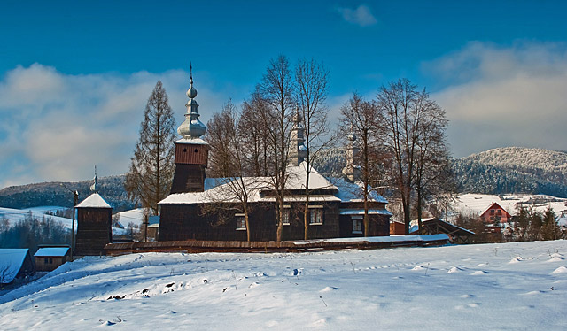 Cerkiew pw. Św. Łukasza zbudowano w 1856 r., z wykorzystaniem fragmentów dawnej świątyni. Drewniana, o konstrukcji zrębowej jest trójdzielna i jednonawowa. Dachy nad nawą i prezbiterium ma łamane, a nad babincem siodełkowate, zwięczone baniastymi wieżyczkami ze ślepymi latarniami. Wyposażenie wnętrza jest cerkiewne. Warto zwrócić uwagę na polichromie ornamentalną z 1801 r., ikonostas barokowo-klasycytyczny z XIX w. wpływów bizantyjskich możemy się doszukać w siedmiu ikonach Deesis z apostołami z XVI w., które znajdują się na parapecie chóru. Kościół przemianowany na rzymskokatolicki pod tym samym wezwaniem.