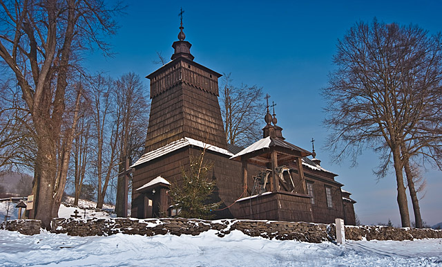 Podobnie jak w innych łemkowskich wioskach również i tu, w centrum na wzgórzu stoi cerkiew pw. św. Dymitra. Zbudowana w 1861 r. w typie zachodnio-łemkowskim. jest drewniana, trójdzielna, i jednonawowa. Posiada dach namiotowy, podbity gontem i kryty blachą. Nad babińcem spoczywa dach siodłowy. Wieże wieńczy hełm namiotowy ze sześcioboczną ślepą latarnią. Wewnątrz polichromia ornamentalna z pocz. XX w. oraz częściowo zachowane wyposażenie cerkiewne. Na szczególną uwagę zasługuje ikonostas rokokowo-klasycystyczny z XIX w. Dużą wartość artystyczną posiada również obraz "Chusta św. Weroniki" z końca XVIII w.