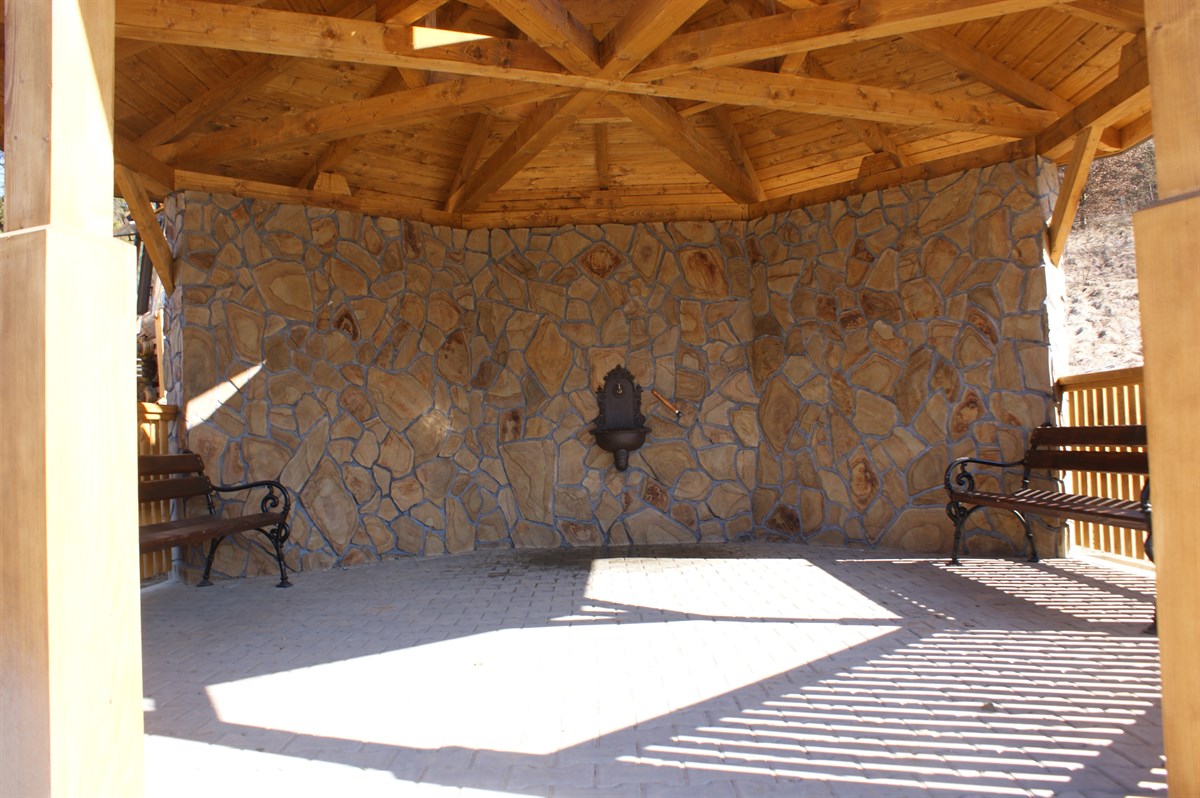 1. Obudowano źródełko wody mineralnej altanką o konstrukcji drewniano – murowanej z okładziną kamienną.