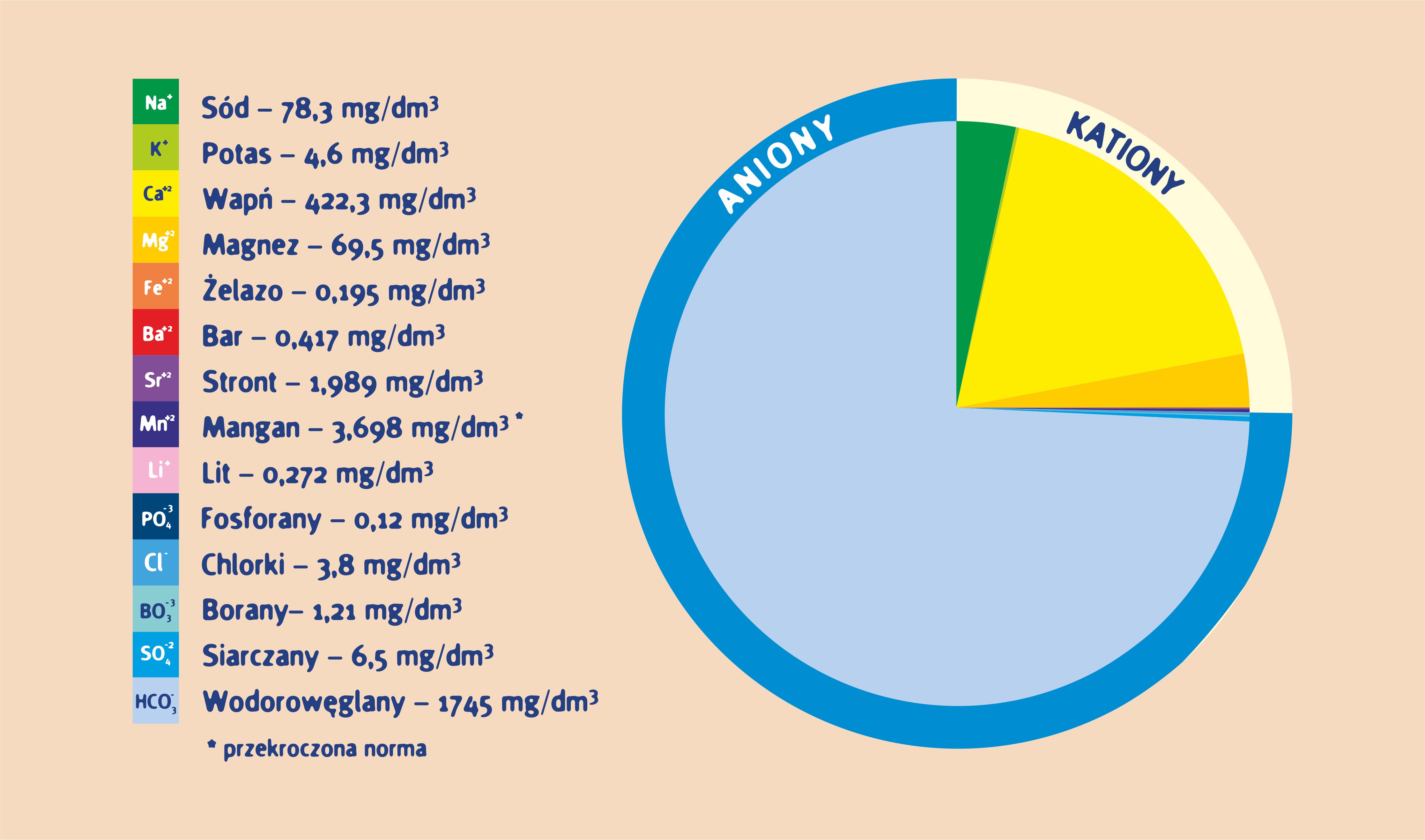 5. Zamontowana została tablica informacyjna, która stanowi element oznakowania altanki ze źródełkiem wody mineralnej. Na tablicy zamieszczone są m.in. informacje o wodzie mineralnej, składzie chemicznym wody i o jej walorach, mapka