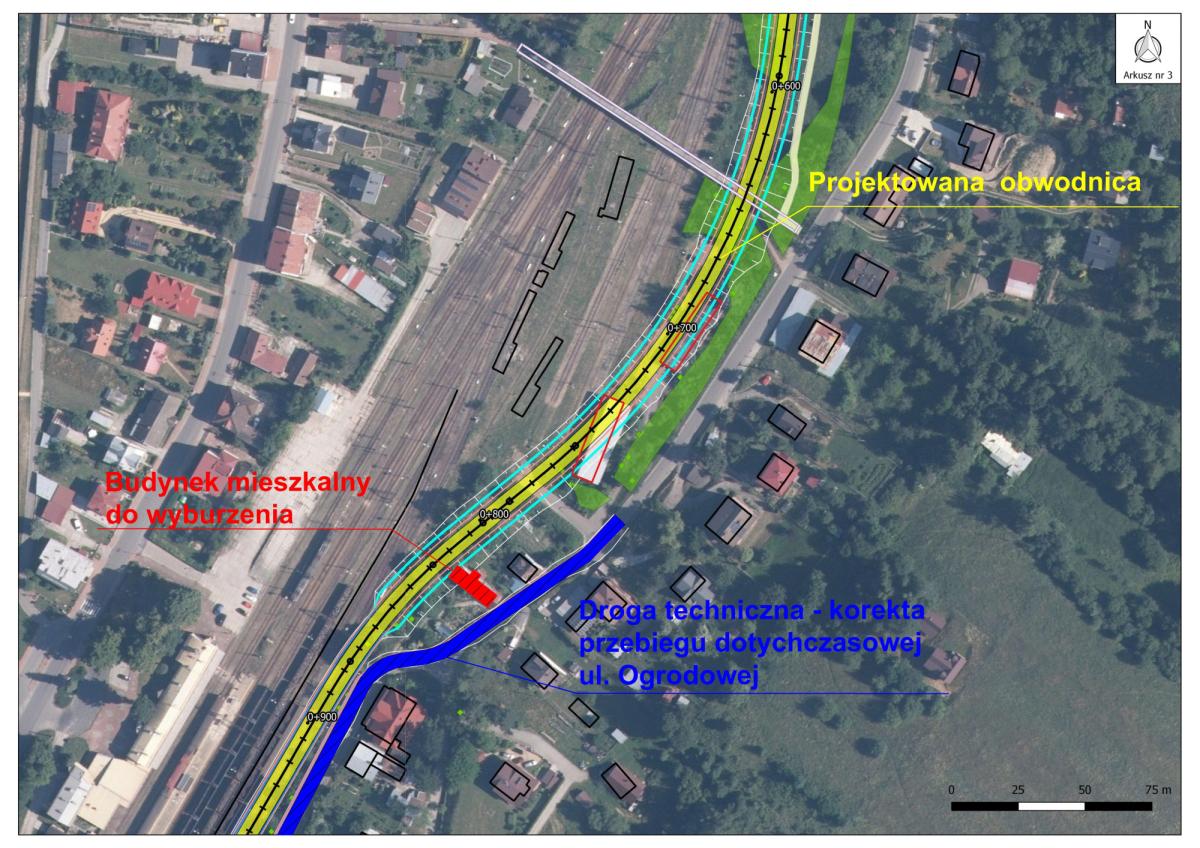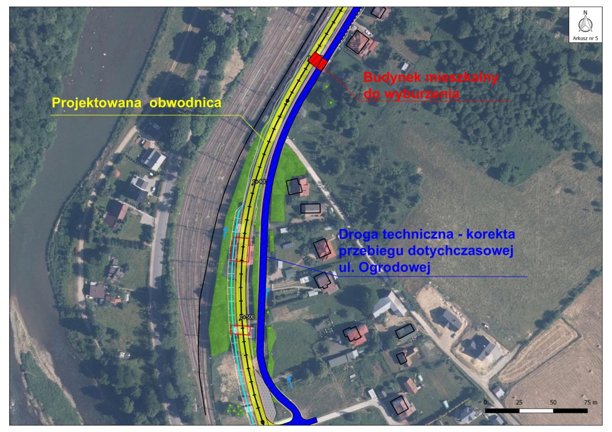 W związku z pojawiającymi się w przestrzeni medialnej nierzetelnymi informacjami dotyczącymi przebiegu projektowanego II etapu obwodnicy Muszyny prezentujemy fragment przebiegu drogi wzdłuż ul. Ogrodowej (od przejazdu kolejowego na ul. Piłsudskiego do przejazdu kolejowego na ul. Pułaskiego) na który ma być wydana decyzja środowiskowa. Czerwonymi prostokątami zaznaczone są budynki przeznaczone do rozbiórki. Budynki te w przeważającym stopniu są obiektami gospodarczymi, budynkami mieszkalnymi w stanie śmierci technicznej i tylko w 8 przypadkach budynkami zamieszkałymi.
