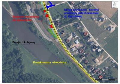 Przebieg drogi projektowany jest w dużej części po obecnym terenie kolejowym i tylko w niewielkim stopniu po istniejącym śladzie obecnej ul. Ogrodowej. W ramach projektu przewiduje się montaż ekranów akustycznych, urządzeń BRD (bezpieczeństwa ruchu drogowego), oświetlenia ulicznego, kanalizacji deszczowej i rowów odprowadzających wody opadowe. Projektowane jest również przejście podziemne pod linią kolejową ułatwiające bezpieczną komunikację pieszych oraz droga techniczna do obsługi części zabudowań (podobnie jak przy ul. Kościelnej).